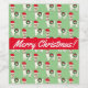 Whimsical modern hand illustrated llamas with santa hats and wreaths on green background.  Customisable red band with white text.