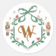 Whimsical Christmas Nutcracker Monogram Crest Bow Classic Round Sticker
