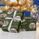 Merry Christmas in dark green modern script -- If you crop your photo into a square before uploading, it will be easy to edit the design. The paper includes a unique and trendy Merry Christmas greeting with a bright and joyful pine branch pattern on the back. This design has an informal, joyful look to it with painted elements and a handwritten font. If you need to move anything around, click on the customise button to make changes.