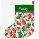 Cute pattern of tiny Christmas stockings in red and green is a funny, fun and festive design on this Christmas stocking. Personalise the name for a custom made stocking.