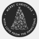 Add a sophisticated touch to your holiday mail with these modern Christmas stickers featuring a hand-drawn white Christmas tree adorned with playful bows on a bold black background. Your custom greeting and family name encircle the tree, creating a sleek and stylish design that stands out beautifully against the dark backdrop. Perfect for sealing holiday card envelopes, gifts, and party favors, these stickers bring a refined, personalized accent to your Christmas cards and seasonal celebrations.