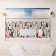 This festive design features a charming forest of whimsical Christmas trees surrounded by cheerful holiday details, including bright red presents, playful ornaments, golden stars, and winter foliage. With a cosy hand-drawn style and a palette of deep greens, soft neutrals, and warm pops of red, the artwork captures the nostalgic joy of the season. Perfect for creating a magical holiday mood, it combines modern folk inspiration with a timeless Christmas spirit, making it a delightful choice for seasonal decorating and gift-giving. AI generated artwork.