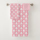 This cute pink and white Christmas bath towel set, features a whimsical Christmas tree and star pattern.