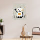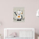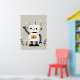 Amidst a whimsical backdrop, a friendly robot waves cheerfully, its white body and head adorned with orange circular ears and expressive black eyes. The playful style, scattered stars, and small plants create a delightful scene that appeals to both children and adults, adding a touch of futuristic charm and warmth to any nursery.
