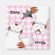 My cartoon drawing of a tabby cat showing it's angelic side and it's evil side on a background of pink gingham pattern. Shown here on a square clean or dirty dishwasher magnet.
