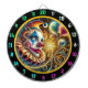 Bring a fun, playful touch to your game room, dorm, or man cave with this Whimsical Clown Face Dartboard. The bright, colourful clown face is sure to catch everyone’s attention, featuring a big, exaggerated red nose and oversized, happy eyes that make it impossible not to smile. The clown is surrounded by balloons in vibrant hues, further enhancing the playful theme of this dartboard. It’s the perfect combination of fun and functionality for birthday parties, casual hangouts, or any event that needs a touch of humour. The colours pop against the black background, making this dartboard an eye-catching centerpiece in any room. The gold accents add a touch of sparkle and sophistication, making the design both cheerful and polished. Not just for looks, the dartboard is built to last, with durable materials that can withstand hours of friendly competition. Whether you’re playing with friends, decorating for a clown-themed party, or simply adding some whimsy to your space, this dartboard is sure to be a hit. Its cheerful design and high-quality craftsmanship make it a fantastic addition to any space, creating a lively, fun atmosphere wherever it’s displayed. Bring joy, laughter, and entertainment to your space with this charming clown face dartboard.