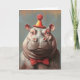 A humourous and charming portrait of a hippo dressed as a clown, featuring a red bow tie and a colourful party hat. Perfect for adding a playful touch to any space or creative project.