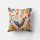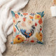 Whimsical Colourful Chicken Floral Background Cushion