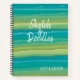 A beautiful girly design with olive green, aqua, turquoise watercolor stripes with modern calligraphy, sketch and doodle book.