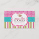 Whimsical Cookies Business Cards with fun playful pastel stripes and heart shaped cookies. Perfect for any home bakery or candy shoppe. Created by Colourful Designs Inc. Copyright 2012. All text can be modified.