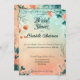 Celebrate a bridal shower with this whimsical coral and teal invitation featuring delicate floating flowers, lace accents, and glowing details. The soft gradient background creates a vibrant yet elegant atmosphere, perfect for a boho or rustic-themed celebration. Personalise with event details, offering a unique touch for the special day. Ideal for brides seeking a blend of sophistication and charm.