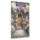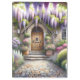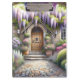 This enchanting scene captures the essence of a storybook cottage garden, bursting with lush blooms and cascading wisteria in soft purples, pinks, and whites. A charming arched wooden door welcomes you through a stone path framed by flowering shrubs, manicured greenery, and dreamy light filtering through the foliage. The overall mood is peaceful, romantic, and full of secret garden nostalgia—perfectly aligned with cottagecore and fairytale aesthetics. The composition draws you inward, evoking a sense of wonder and serenity beneath the floral canopy. AI generated artwork.