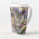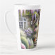 This enchanting scene captures the essence of a storybook cottage garden, bursting with lush blooms and cascading wisteria in soft purples, pinks, and whites. A charming arched wooden door welcomes you through a stone path framed by flowering shrubs, manicured greenery, and dreamy light filtering through the foliage. The overall mood is peaceful, romantic, and full of secret garden nostalgia—perfectly aligned with cottagecore and fairytale aesthetics. The composition draws you inward, evoking a sense of wonder and serenity beneath the floral canopy. AI generated artwork.