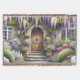 This enchanting scene captures the essence of a storybook cottage garden, bursting with lush blooms and cascading wisteria in soft purples, pinks, and whites. A charming arched wooden door welcomes you through a stone path framed by flowering shrubs, manicured greenery, and dreamy light filtering through the foliage. The overall mood is peaceful, romantic, and full of secret garden nostalgia—perfectly aligned with cottagecore and fairytale aesthetics. The composition draws you inward, evoking a sense of wonder and serenity beneath the floral canopy. AI generated artwork.