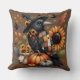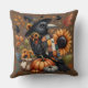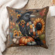Whimsical Crow with Pumpkins and Sunflowers Cushion