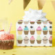 Sweet and whimsical pattern features six different cupcakes in fun and vibrant colours