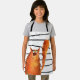 With cat lovers in mind, this whimsical apron design is a fun choice for home, school, arts and crafts activities and more! It features a large red-orange cat with a big fluffy tail and curious eyes. Painted in vibrant watercolors, the design has a casual modern charm. A grouping of thin black stripes skewed over a contrasting white background add a stylish surface pattern. You can customise this design by adding a name or other text if you desire, but it looks marvellous without any text added.