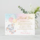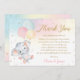 Whimsical Cute Elephant Balloons Baby Shower Girl Thank You Card