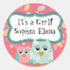 Whimsical Cute Fun Swirl Owl Baby Shower Stickers