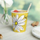 A large, whimsical drawing of a daisy on a yellow background. You can add a name, monogram or other custom text. If you need to move the art around, click on the customise button to make changes.