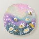 Bring a touch of magic and whimsy into your home with this dreamy round throw pillow. The enchanting watercolor design features happy bumble bees flying amongst bright white daisy flowers in a field set against a soft, beautiful rainbow or sunset-hued background. The fantasy aesthetic and cheerful pastel colours make it a unique statement piece. Perfect for a child's nursery, a teen's room, or to add a sweet, cottagecore feel to any living space. This artistic pillow is sure to be a delightful conversation starter.
