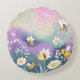 Whimsical Daisy Flowers Bumble Bees Rainbow Meadow Round Cushion