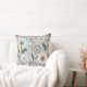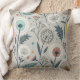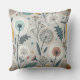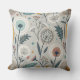Dandelion Pattern Throw Pillow - A charming seamless pattern featuring whimsical, stylised flowers and intricate dandelion seed heads, paired with abstract botanical details. The muted palette of blues, teals, oranges, and reds on a soft light grey background creates a soothing, harmonious look.