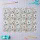 Dandelion Pattern Tissue Paper - A charming seamless pattern featuring whimsical, stylised flowers and intricate dandelion seed heads, paired with abstract botanical details. The muted palette of blues, teals, oranges, and reds on a soft light grey background creates a soothing, harmonious look.