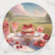 AI generated A decadent strawberry short cake and berry pink drinks birthday picnic in a field near a festival tent. Beautiful coloured and themed confetti to make your table setting whimsical and wonderful. Guests will love these.