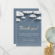 Send a thoughtful note of appreciation with this modern and whimsical baby shower thank you card, created to match the Whimsical Denim Blue Baby Shower Invitation. A soft denim-blue texture forms the backdrop, while delicate white origami clouds float along the top edge. Tiny golden star motifs dangle playfully as if suspended by threads. A stylish and heartfelt way to thank guests for sharing in your special celebration.