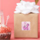Cute hand drawn pink dinosaur with balloon on her tail birthday stickers.