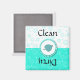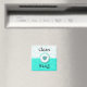 Pretty aquamarine and white dishwasher magnet, with a whimsical dotted circle pattern design, in opposite colours. Graphics of a aqua coloured leaf, on a decorative circle, in the middle of the magnet. Black text reads Dirty and black text reads Clean. Makes a great hostess gift.