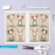 This features both left facing and right facing designs of four sketch style animal portraits: a puppy, a mouse, a kitten, and a bunny. The characters have blushing cheeks, oversized ears or eyes, and playful, stitched details in pale coral red and dusty blue. Set against a vintage-inspired parchment background with faded illegible handwriting, scribbles and scattered floral doodles, the overall feel is nostalgic and handmade. Artwork similar to a hand-drawn mixed media illustration with folk art and storybook influences…..COLOR COMBINATIONS: Parchment, grey, pink, blue, charcoal, coral, and ivory. The desaturated palette adds a delicate vintage feel…..PERFECT FOR: Whimsical decoupage, nursery and children's projects, handmade cards, journal covers, vintage inspired collages, mixed media ..……. 🖤 NOTE 1. This design is available in three options: Left, Right and both together You can find them in the Collection shown below. If they don’t appear there, try searching for their unique identifiers: DS1L for the Left design, DS1R for the Right version and DS1B for both….🖤 NOTE 2. I personally find that 18lb tissue paper is ideal for decoupage. The 10lb paper is much thinner, so it dries faster, which can lead to more wrinkles. The 18lb paper is a bit thicker, giving you more time to work with it and helping to reduce wrinkles..….🖤 NOTE 3. All items with this particular design share my unique identifying “Letter/s Number/s” label in the title for easy searching.