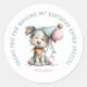This adorable round sticker is perfect for adding a touch of charm to birthday celebrations. Featuring a delightful watercolor-style illustration of a whimsical dog, this sticker is sure to bring smiles to any occasion. Ideal for invitations, gifts, or party favors, this classic design adds a personalized and heartwarming touch to your birthday preparations.