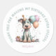 This adorable round sticker is perfect for adding a touch of charm to birthday celebrations. Featuring a delightful watercolor-style illustration of a whimsical dog, this sticker is sure to bring smiles to any occasion. Ideal for invitations, gifts, or party favors, this classic design adds a personalized and heartwarming touch to your birthday preparations.