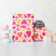 This pretty, whimsical pattern has interlocking hearts done in a doodle style. They're made in shades of purple, pink, orange and yellow on an off-white background. Some hearts have polka dots, others plaid or stripes. They all float around each other and interlock on this sweet, fun design that celebrates love. It's perfect for Valentine's Day or all year.