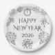 Whimsical Doodles Black Happy New Year 2026 Paper Plate