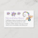 Gender neutral baby shower, books for baby, enclosure card done in white, with a colourful and whimsical dragonfly and purple flowers, across the top. The custom text is ready to read what you want.