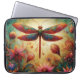 Whimsical Dragonfly Floral Abstract Art Teal Pink Laptop Sleeve