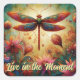 Whimsical Dragonfly Floral Abstract Art Teal Pink Square Sticker