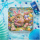 Description bring joy and colour to your Easter celebrations with this delightful design featuring an adorable bunnies surrounded by vibrant decorated eggs flowers and playful details. This artwork is perfect for party plates cups napkins and all your festive table wear the bright pastel colours and charming illustration create a cheerful fun atmosphere that everyone will love ideal for family gatherings Easter brunches
