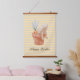 Brighten your space this Easter with a whimsical wall hanging featuring a charming illustration of a bunny resting in a polka-dot flower pot alongside a carrot and greenery. Set against soft grey stripes, this festive and cosy design brings a playful yet elegant touch to your seasonal decor. Perfect for living rooms, entryways, or any space that needs a cheerful Easter vibe.