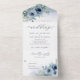 Whimsical Elegant Script Floral Dusty Blue Wedding All In One Invitation