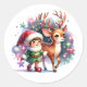 Whimsical Elf and Reindeer Christmas Classic Round Sticker