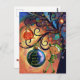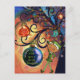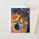 Spread a truly whimsical holiday greeting with this artistic Christmas postcard, perfect for mailing to all the little ones on your list! The front showcases a vibrant, watercolor-style illustration of a happy elf holding a gift and a sweet little blue bird perched on a glistening ornament. The colourful, sparkling, swirly tree background makes this a unique and memorable piece of mail.