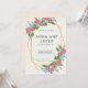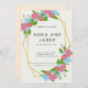 Introducing our stunning wedding invitation, featuring an elegant old geometric frame beautifully adorned with charming pink and blue flowers. The intricate design of the frame is sure to impress your guests with its timeless beauty and sophistication, while the delicate flowers add a touch of whimsy and romance to the overall look.