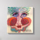 This is a whimsical face put on a canvas. It comes from an acrylic drawing.