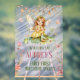 Cute first birthday (or any birth date) Whimsical fairy acrylic sign with star lights and pastel flowers, accompanied by a cute frog, butterfly and dragonfly. Change the text to any event or occasion. This image will easily convert to the 20 x 30 or 24 x 36 inch sizes