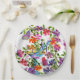 Whimsical fairy-like flowers and butterflies surrounding a blue bird bath. Feminine Airy and delicate blues, pinks, purples, yellows, greens, all your favourite colours for your favourite gatherings! Custom personalised monogram party paper plates for all occasions. Watercolor design image originates from the designers collection. Enjoy coordinating your party ensemble to express your own Theme. If you want something more particular please contact me at sue.chorney@shaw.ca.