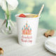 Celebrate in royal style with this princess castle cup design, created with a transparent background for easy customisation. The whimsical watercolor illustration features a fairytale castle with pink walls, golden spires, and turquoise rooftops, paired with elegant script reading “Amelia’s Birthday.”